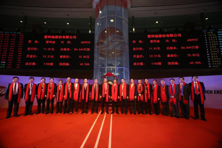 ![]() 開市祥鑼 11月17日,愛柯迪股份有限公司(簡稱“愛柯迪”,證券代碼“600933”)順利掛牌上交所。集合競價(jià)階段,愛柯迪頂格高開大漲20%,連續(xù)競價(jià)階段漲至43.96%,報(bào)價(jià)15.85元。