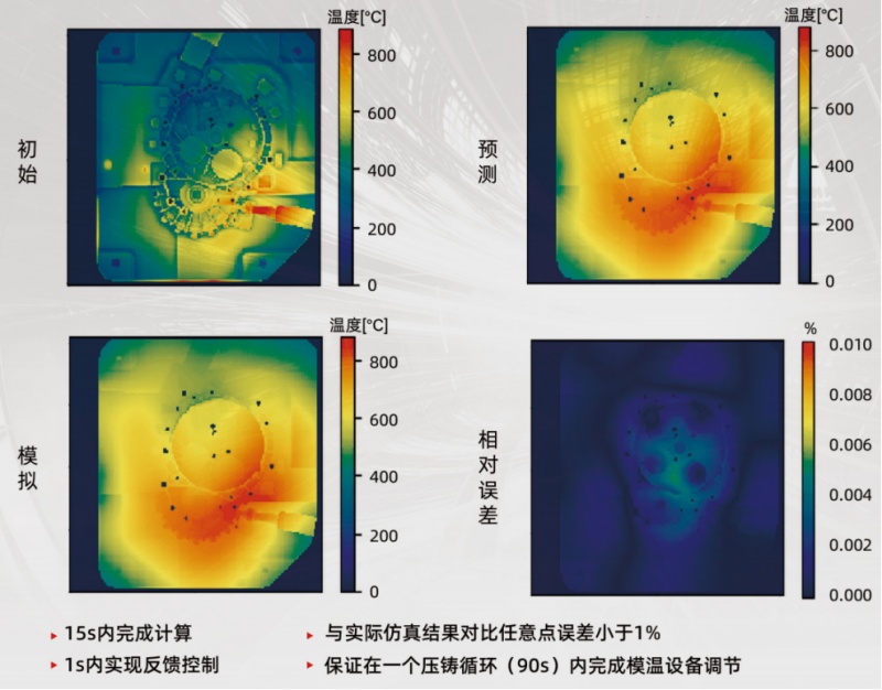 Supreium ADR智能質(zhì)檢系統(tǒng)具備高魯棒性、高準確率、低數(shù)據(jù)依賴等重要技術(shù)優(yōu)勢,識別效果不受產(chǎn)品結(jié)構(gòu)變化影響,盲測準確率經(jīng)驗證在95%以上,且通過結(jié)合材料學基本原理進行缺陷聚類,研發(fā)虛擬缺陷生成算法,遷移學習等方式,完美解決了數(shù)據(jù)依賴的問題,是真正AI驅(qū)動的無人化質(zhì)檢工具,幫助企業(yè)實現(xiàn)檢測節(jié)拍提高80%以上,檢測成本每年節(jié)省30%以上。 04.智能CAE仿真系統(tǒng) 由于一體化壓鑄技術(shù)涉及復雜、大型、高精密零件的一體化成型,其開發(fā)過程離不開CAE仿真預測的關(guān)鍵性支撐作用。基于自主求解算法和超算云仿真架構(gòu)等優(yōu)勢,適創(chuàng)科技壓鑄智能車間以自主壓鑄CAE仿真平臺為客戶提供全流程智能化的超快速模擬仿真分析與設計服務。
