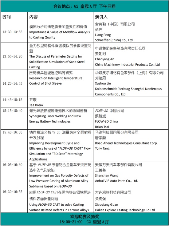 掃描二維碼報名,免費參會 FLOW-3D CAST用戶大會議程 如下: