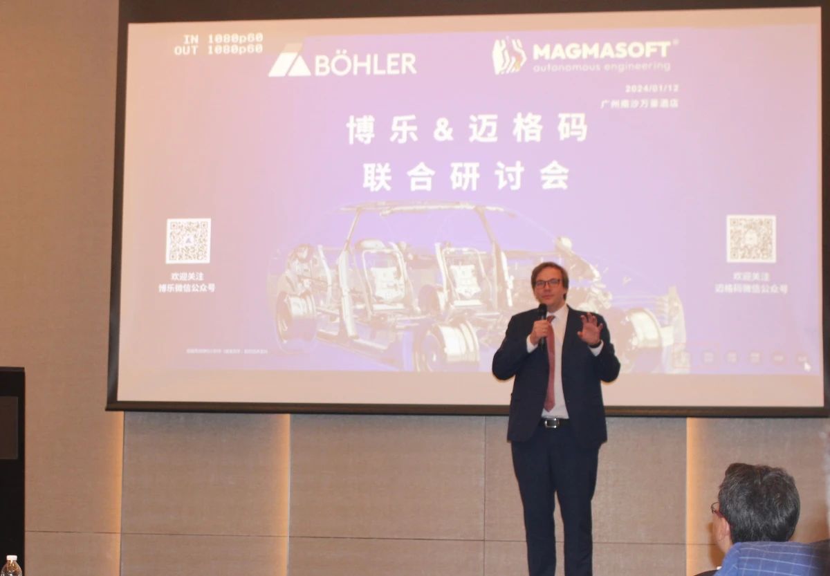 ![]() 新年首聚羊城。2024年1月12日,邁格碼與博樂在廣州南沙萬豪酒店聯(lián)合舉辦一場壓鑄技術研討會。邁格碼大中華區(qū)總經理Moritz Weidt博士、博樂中國董事總經理尹志鎖先生、奧鋼聯(lián)高性能金屬事業(yè)部 Günther Prunner先生、飛樂思金屬表面科技(上海)有限公司主席B.Samuel Ko、深圳品成金屬制品有限公司副總裁兼技術總監(jiān)黃習兵先生,廣東省鑄造行業(yè)協(xié)會陳名亮主任,鑄造、壓鑄及增材行業(yè)企業(yè)代表,中鑄科技、《壓鑄周刊》專業(yè)媒體記者等嘉賓近150人出席本次研討會。